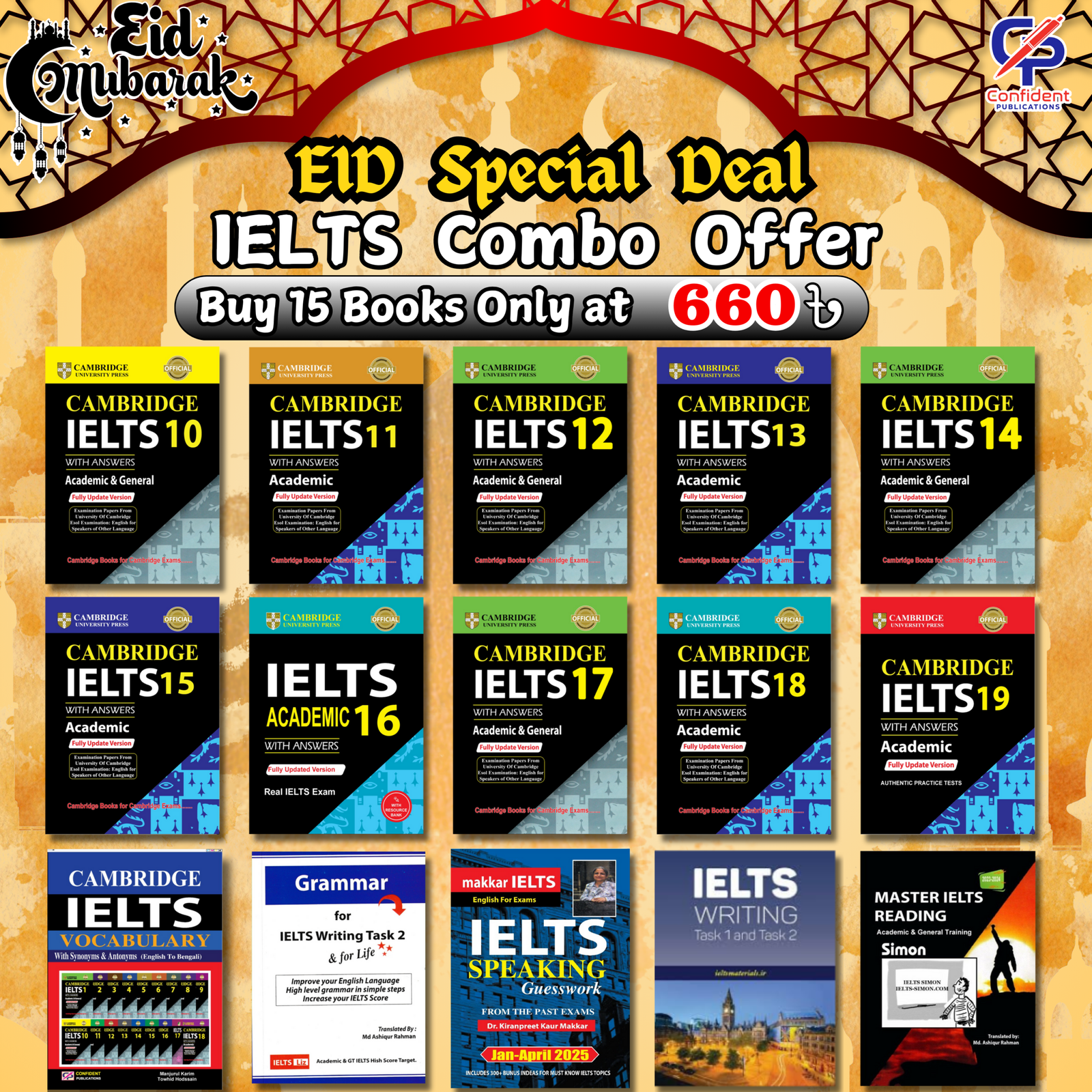প্রতিটি বইতে 4টি Full-Length Test আছে, যা Listening, Reading, Writing & Speaking কভার করে