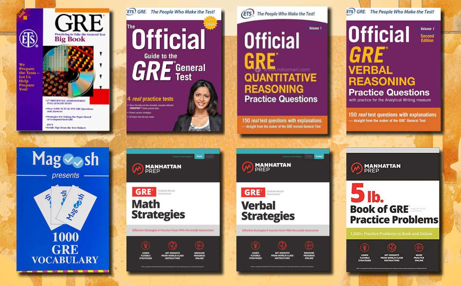 - GRE Big Book – পুরনো কিন্তু কার্যকরী বই, যেখানে ২৭ সেট পুরাতন GRE পরীক্ষার প্রশ্ন রয়েছে।