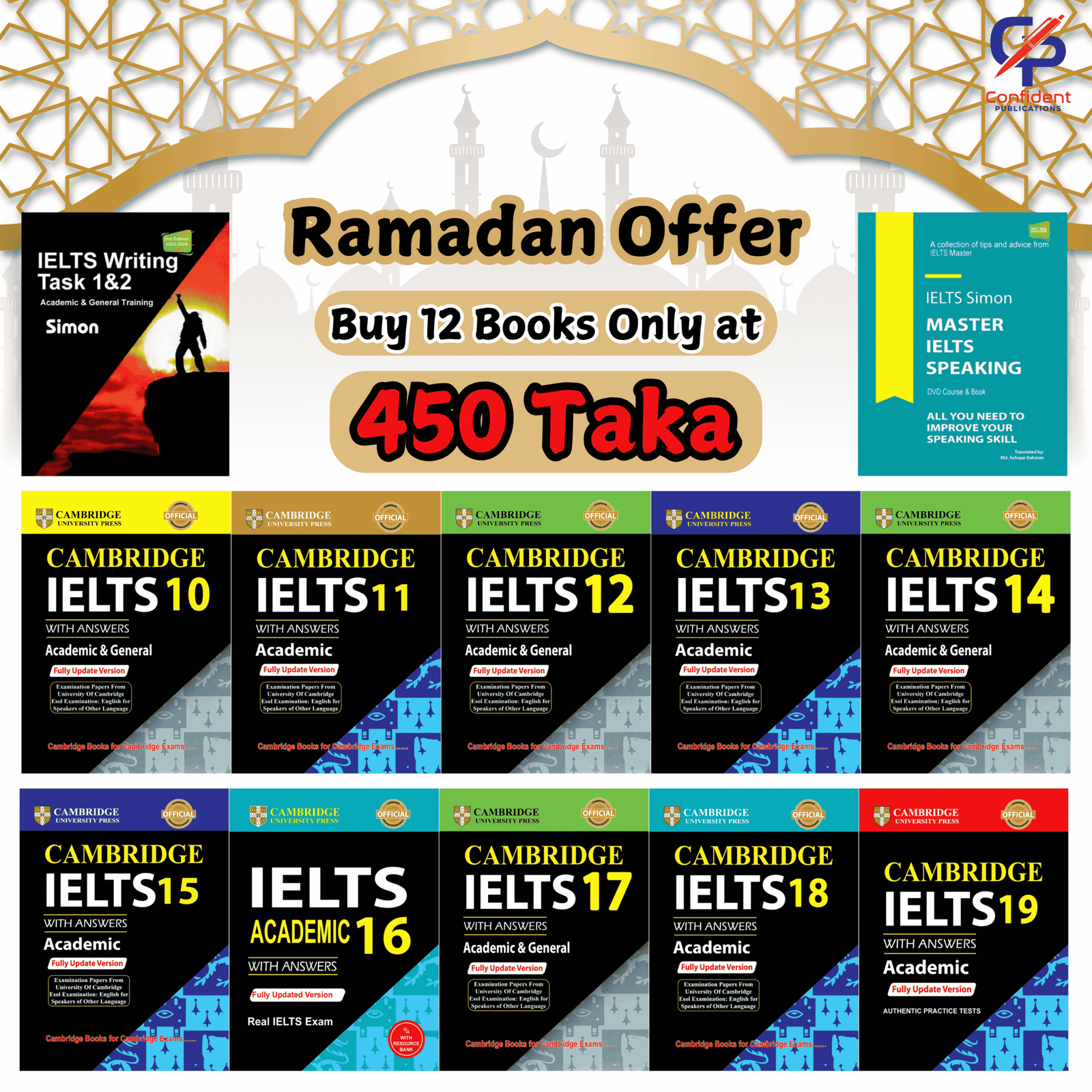 📌 IELTS-এ High Score তুলতে চাইলে Cambridge IELTS 10-19, Simon Writing & Simon Speaking একসাথে ব্যবহার করা সবচেয়ে কার্যকরী প্রস্তুতির উপকরণ।